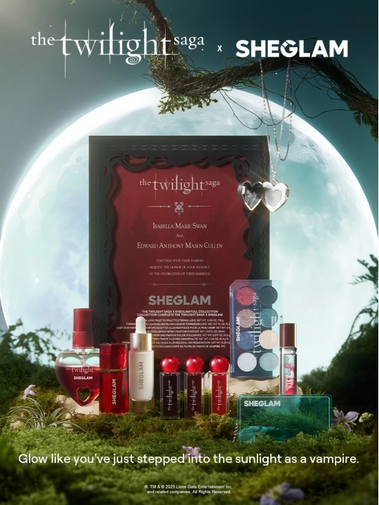 除了功能性爆品,SHEGLAM也在情绪价值上做文章。品牌通过与Hello Kitty、暮光之城、哈利波特等IP的合作,打造出一系列限定彩妆。