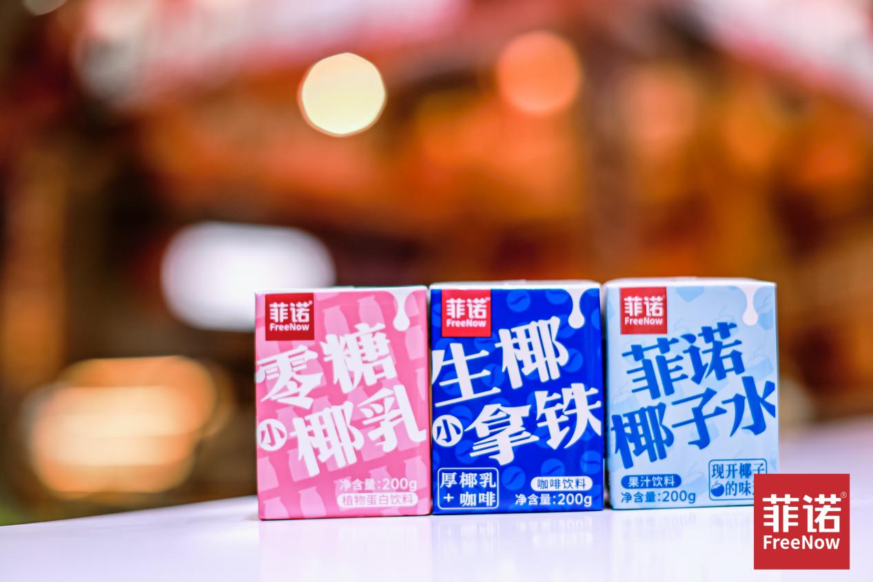 为了让消费者能在更多场景中享受到一杯适宜的椰基产品,2022 年,菲诺推出生椰小拿铁,以菲诺厚椰乳为基底,加载浓郁咖啡,配合200g 小包装的精巧设计,让消费者可以轻松实现生椰拿铁自由。在此之后,菲诺接连推出了零糖小椰乳以及菲诺椰子水等椰基直饮产品,丰富市场与消费者的选择。