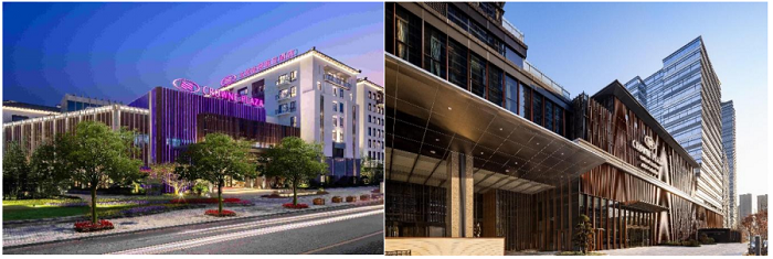 乌镇皇冠假日酒店(左),青岛金水皇冠假日酒店(右)